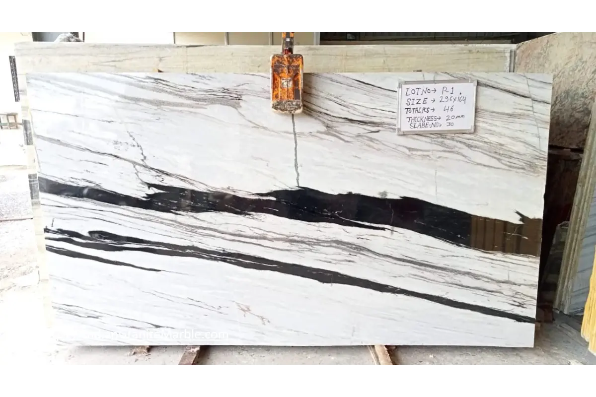 Panda White Marble is one of the most striking natural stones, famous for its white background with bold black diagonal and horizontal veins. This unique color combination makes it a favorite among architects, interior designers, and homeowners looking for a modern, high-contrast look.